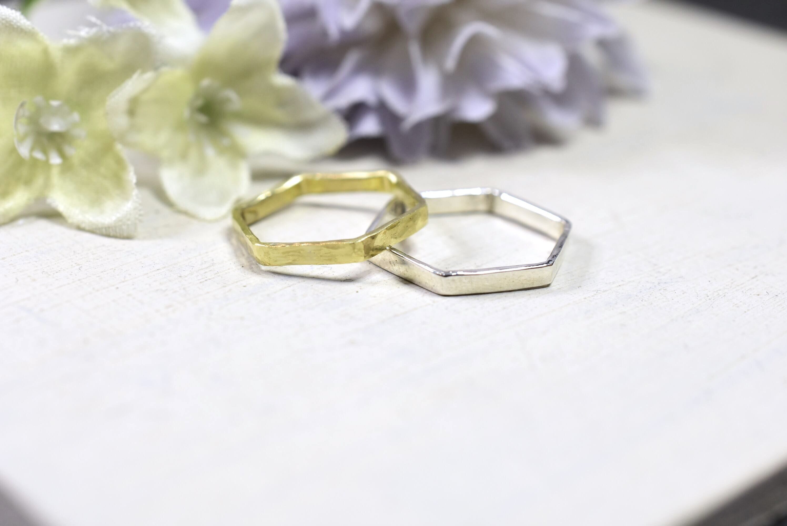 2mmほどの平たい六角形のリングです。