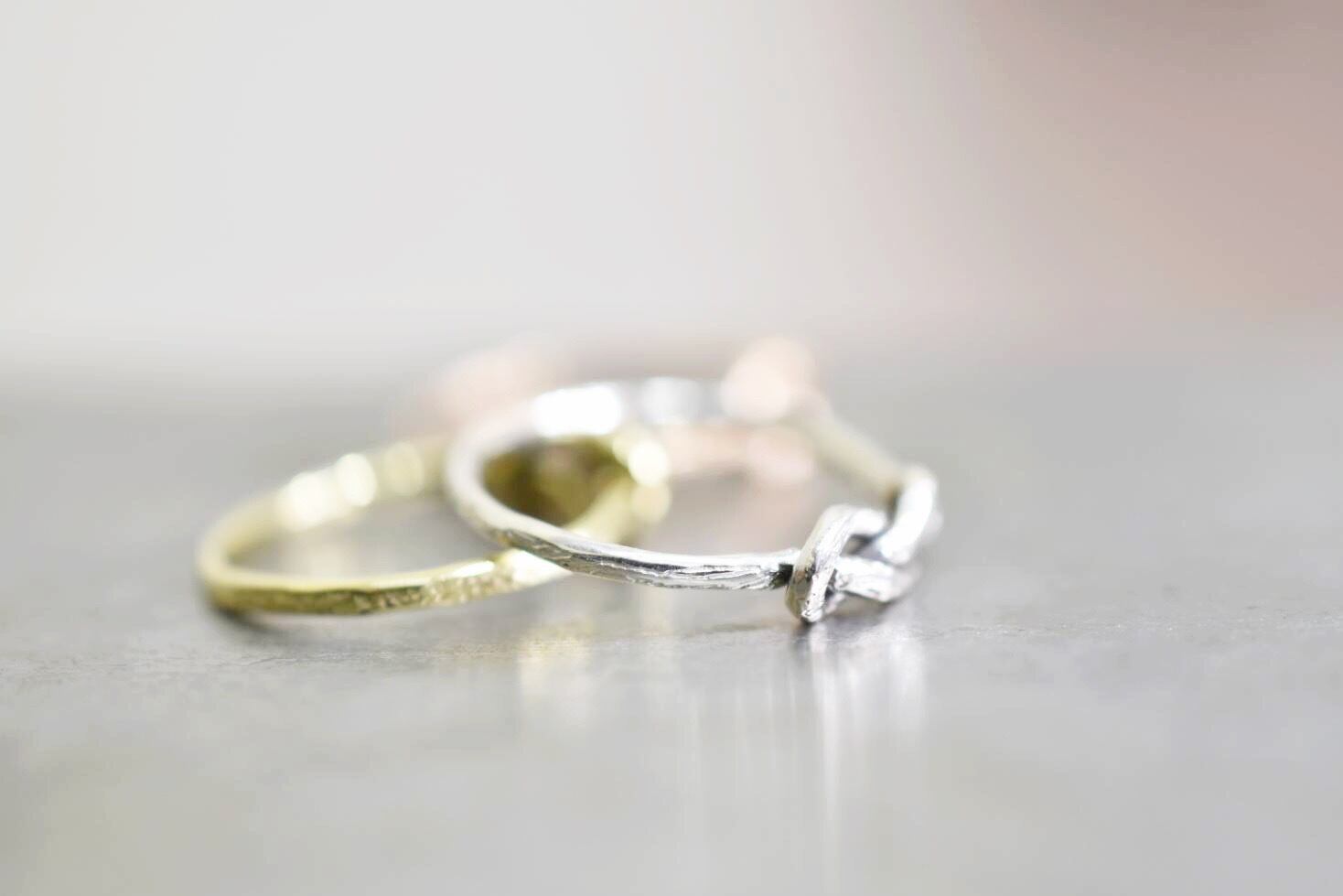 サイズに合わせて一つ一つ丁寧に地金を結び、模様は手彫りにてお入れしております。